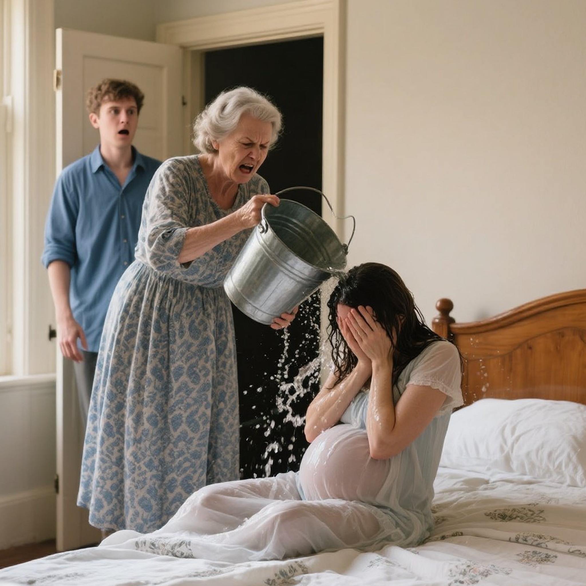 „Wstawaj, leniuchy!” – dźwięk rozległ się sekundę przed szokiem. Lodowata woda spływała po ciele Olivii Bennett, mocząc jej piżamę, włosy i prześcieradło pod nią. Sapnęła, siedząc prosto, zdezorientowana i przerażona. Jej ręce drżały, gdy ocierała wodę z oczu, mrugając, i patrząc na kobietę trzymającą puste metalowe wiadro – jej teściową, Eleanor Bennett.