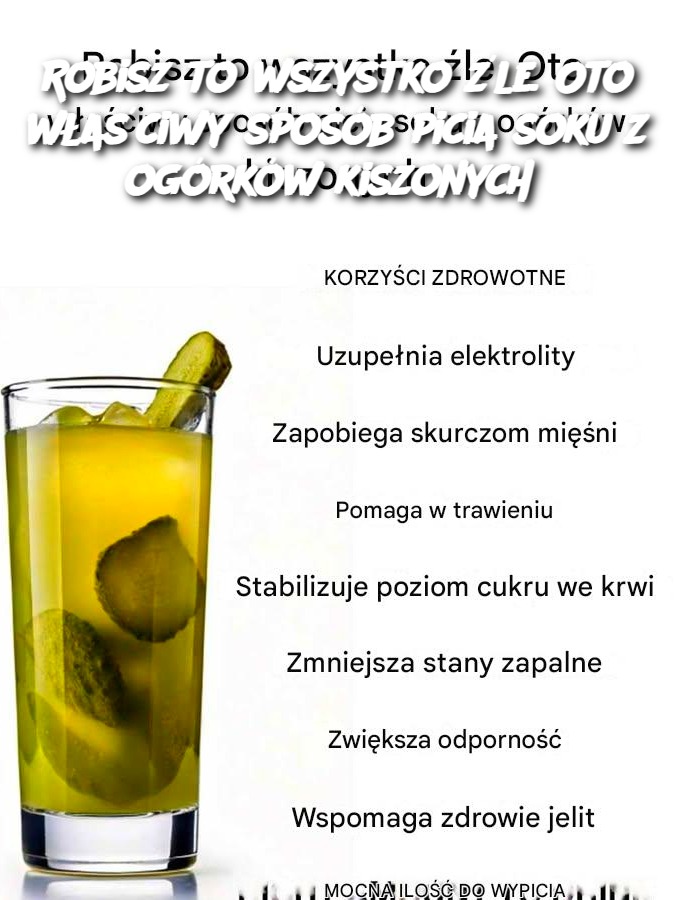 Robisz to wszystko źle. Oto właściwy sposób picia soku z ogórków kiszonych