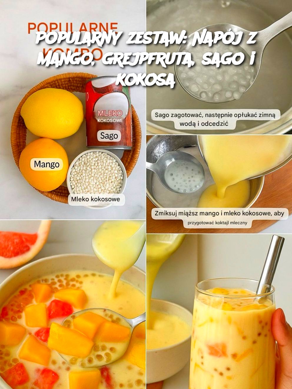 Popularny zestaw: Napój z mango, grejpfruta, sago i kokosa