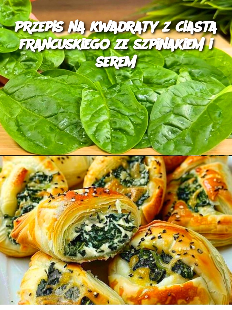 Przepis na kwadraty z ciasta francuskiego ze szpinakiem i serem